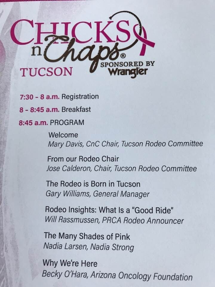 I was invited to speak at the Tucson Chicks n Chaps 5th Annual Women's Rodeo Clinic, held on Sunday, February 18th, 2018. in Tucson, Arizona during the. 93rd Annual Fiesta de los Vaqueros Tucson Rodeo. I shared with everyone present what I call "My Year From Hell" story and what led me to establish my Nadia Strong Foundation.